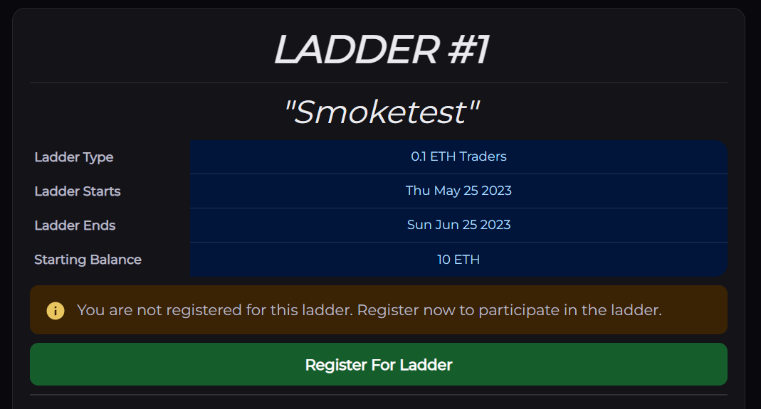 Once you have registered as a trader, in the ladder section click Register For Ladder. You can only register for a ladder before it has started.